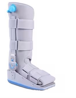 Air walker boot with ROM hinge for controlled ankle support and recovery. Fits shoe sizes 39–42. Ideal for injuries, post-op use, and ankle instability.